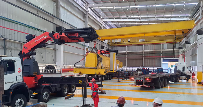Içamento: Utilizamos técnicas avançadas de içamento para movimentar cargas de grandes dimensões ou pesos extraordinários, garantindo total segurança e precisão.