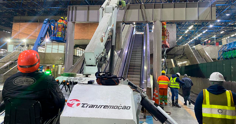 Executamos um serviço técnico no metrô de São Paulo, com utilização de guindaste tipo aranha em espaço reduzido e confinado, para a instalação de uma passarela metálica.