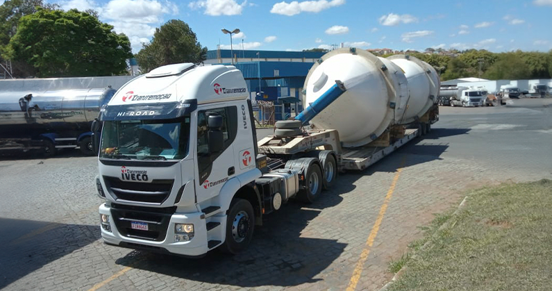No transporte de cargas especiais, como máquinas de grande porte ou pesadas, muitas vezes são necessários conjuntos transportadores diferenciados para assegurar estabilidade e proteção durante o percurso.