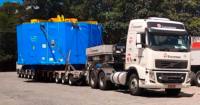 Realizamos os transportes especiais – de Taubaté (SP) a Santos (SP) – de um rotor de 110 toneladas e de um estator de 112 toneladas, utilizando dois conjuntos modulares de 12 eixos assegurando estabilidade, segurança e performance em cada etapa do deslocamento.